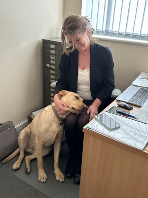 Milo comes to work once a week at the SHE office. He regularly checks on everyone at their desks - therapy!